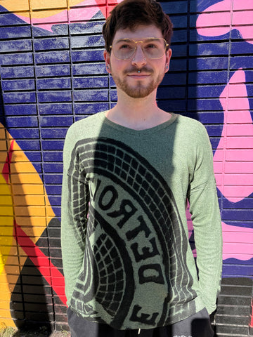 Manhole Cover Laundry Bag, Detroit Tire Print. 100% Cotton, Military Green