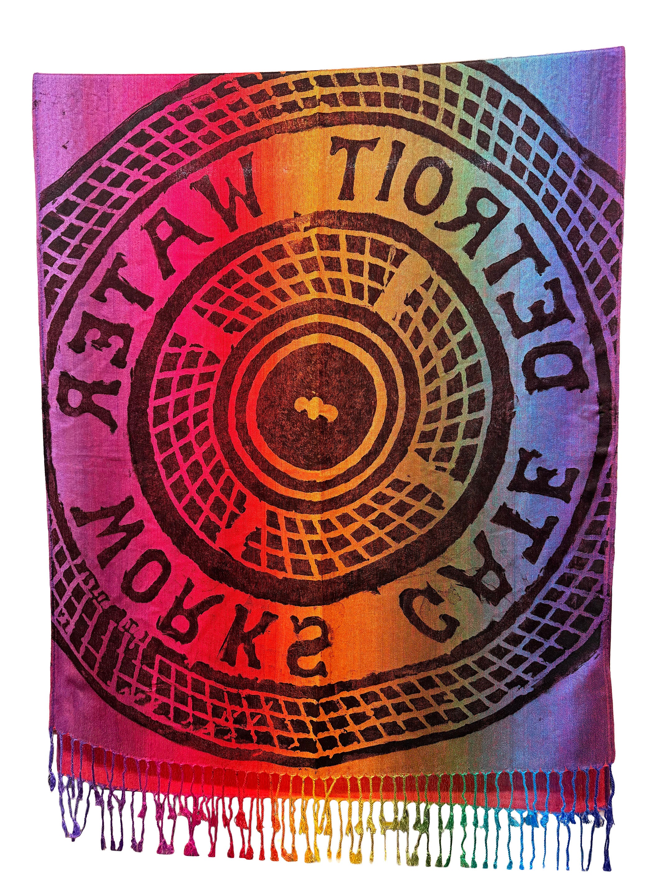Rainbow Manhole Cover Bamboo Scarf, Detroit Tire Print Pashmina, Limited Edition!
