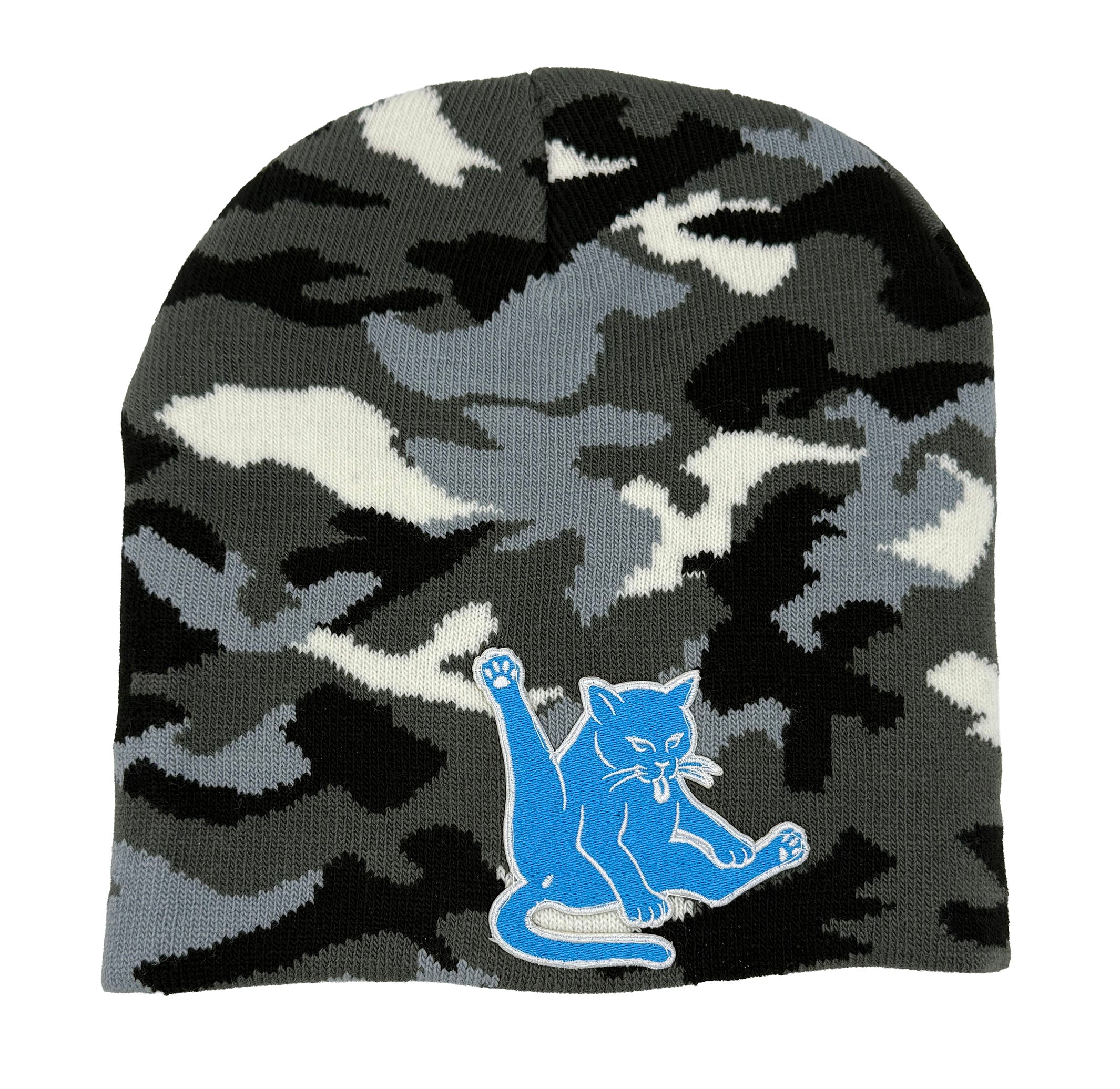 Detroit Kitties Camo Skullcap. Black & White Urban Camo No-Cuff Beanie Hat