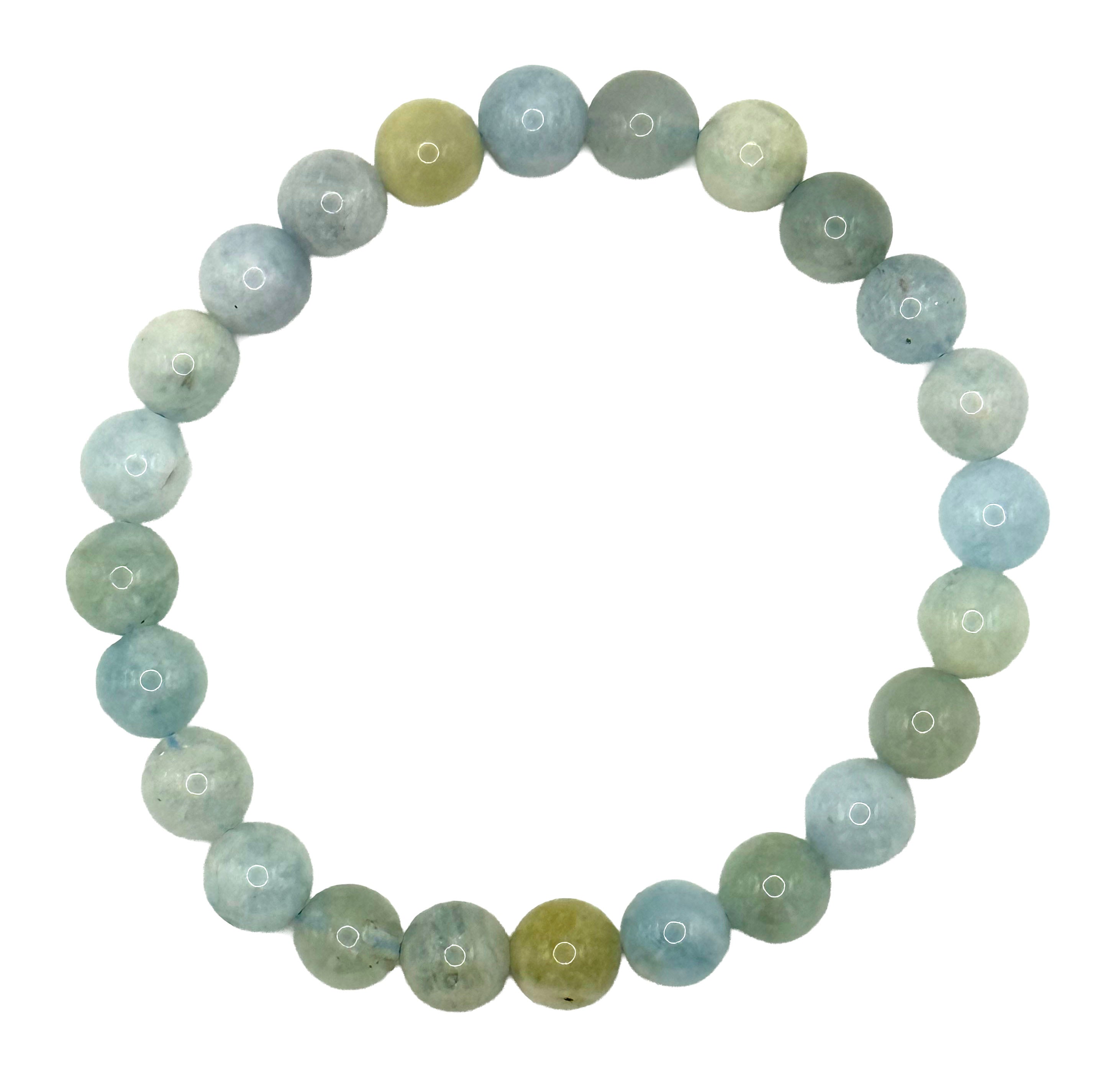 Aquamarine & Heliodor Stone Bead Stretch Bracelet, Mixed Beryl Mala Bracelet