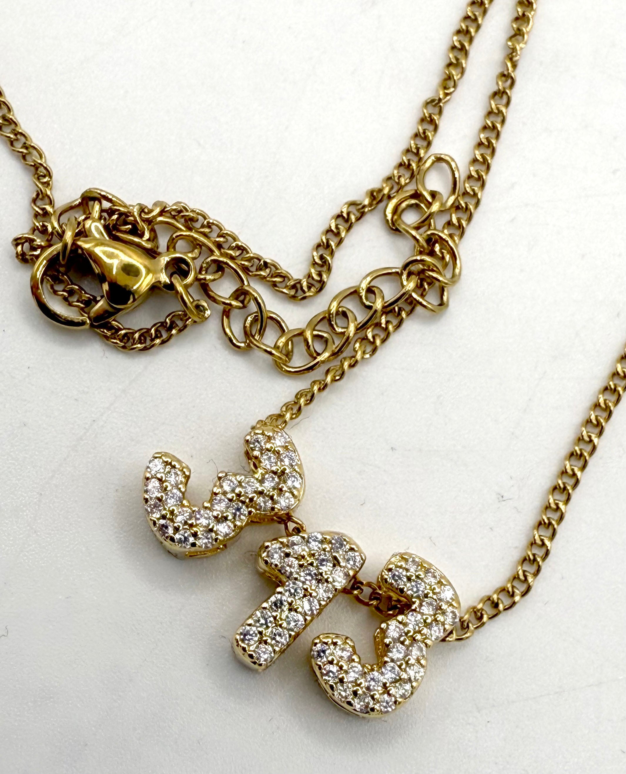 313 Bubble Letter Necklace, Balloon Script Number Pendant