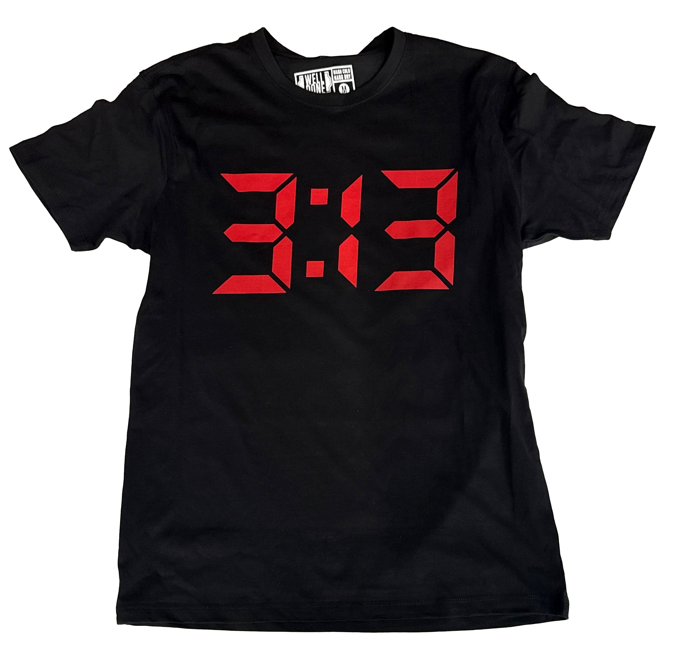313 T-Shirt. Digital Clock Numbers, It's Always a GOOD TIME in Detroit! Red on Black