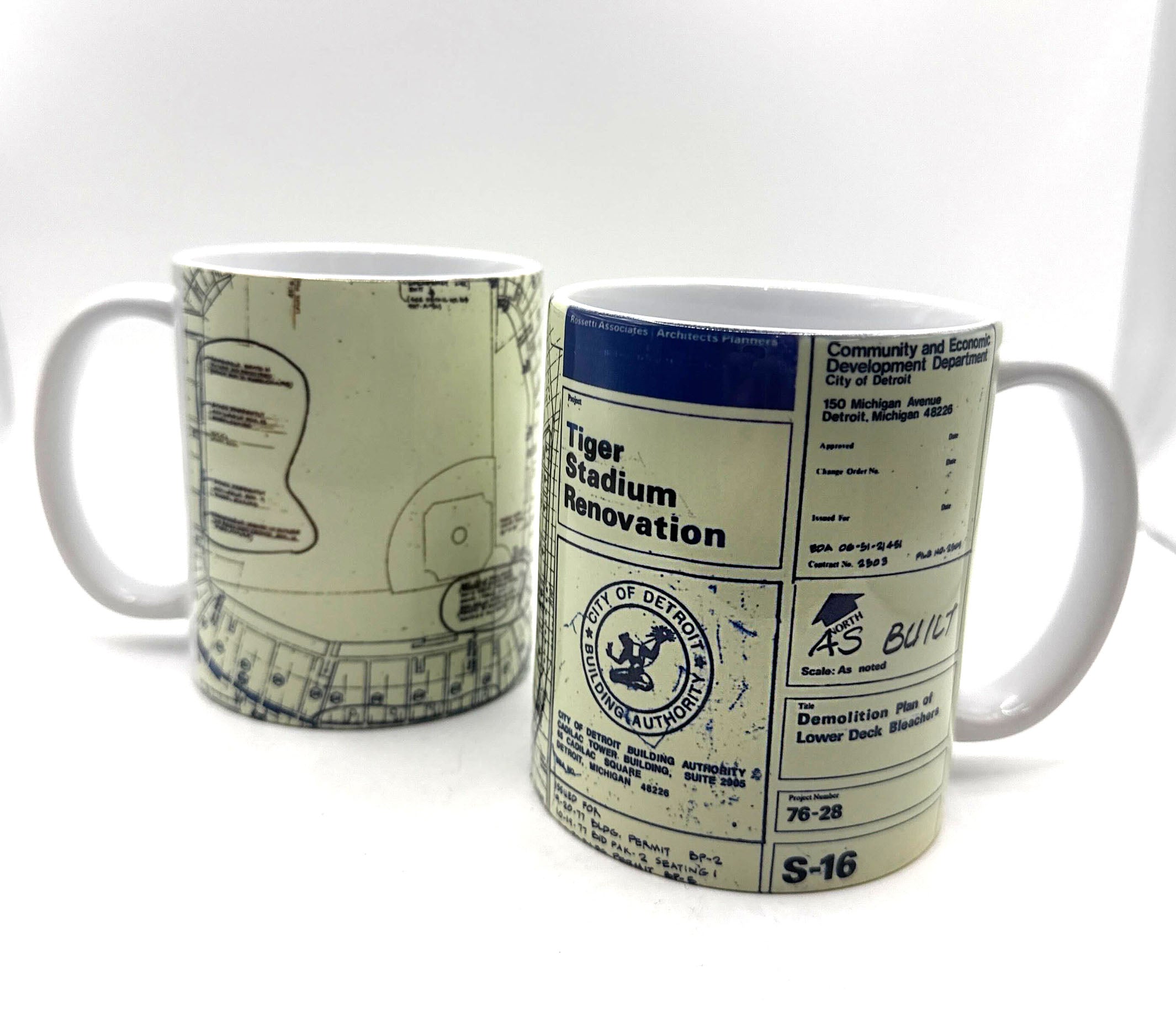 Old Tiger Stadium Ceramic Mug, 1970s Renovation Blueprints Coffee Cup