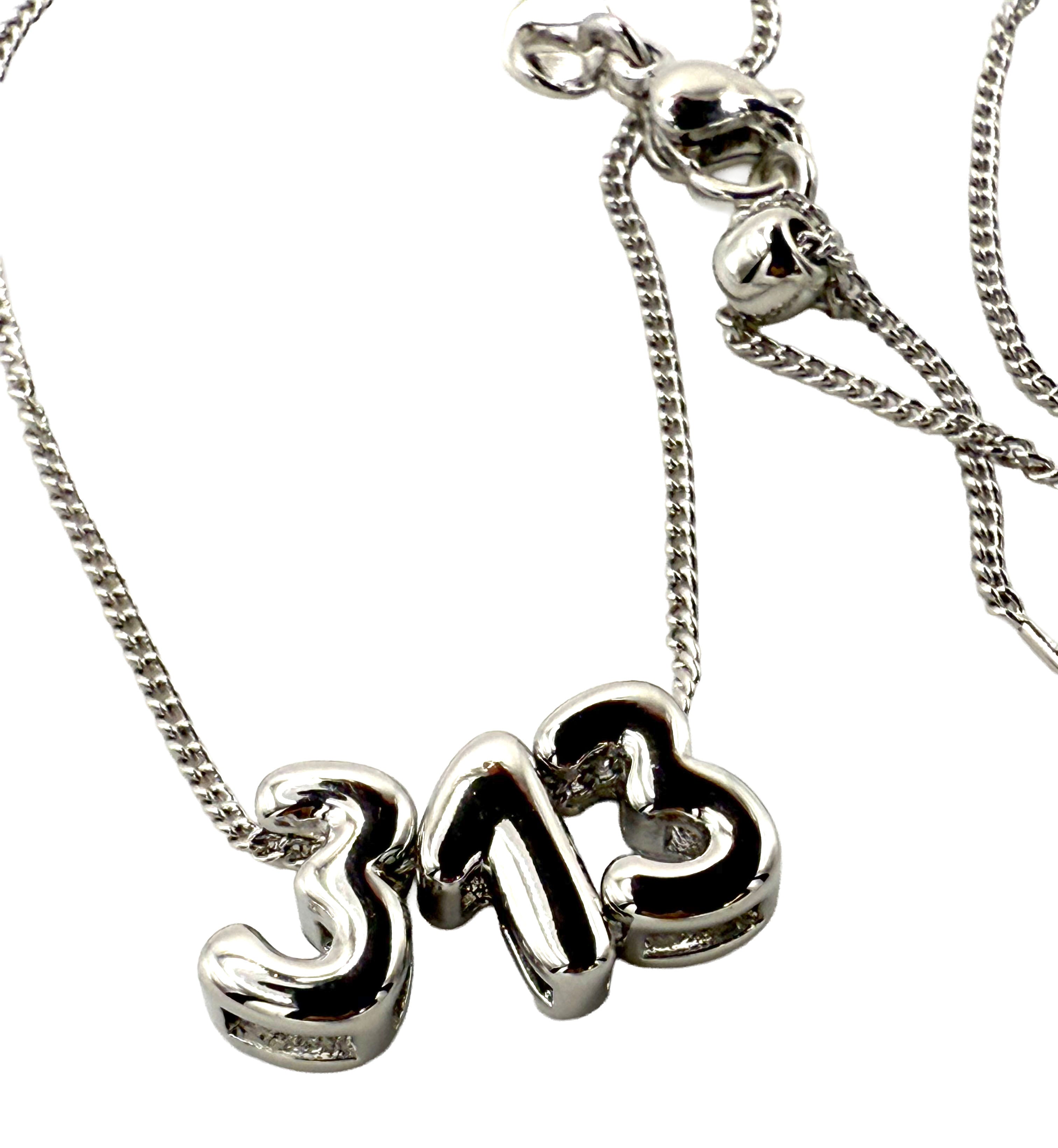 313 Bubble Letter Necklace, Balloon Script Number Pendant