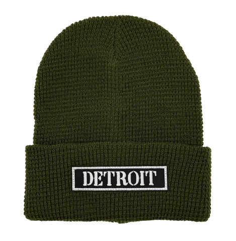 Peak Detroit, LED Audio Level Meter Beanie Cap. Everyone knows that one guy who's always in the red. Detroit's like that sometimes too. Say no to clipping, just don't do it! Embroidered patch on a black knit beanie.