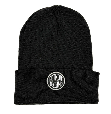 Detroit Script Oval Embroidered Patch Beanie, Black and White Tie Dye Cap